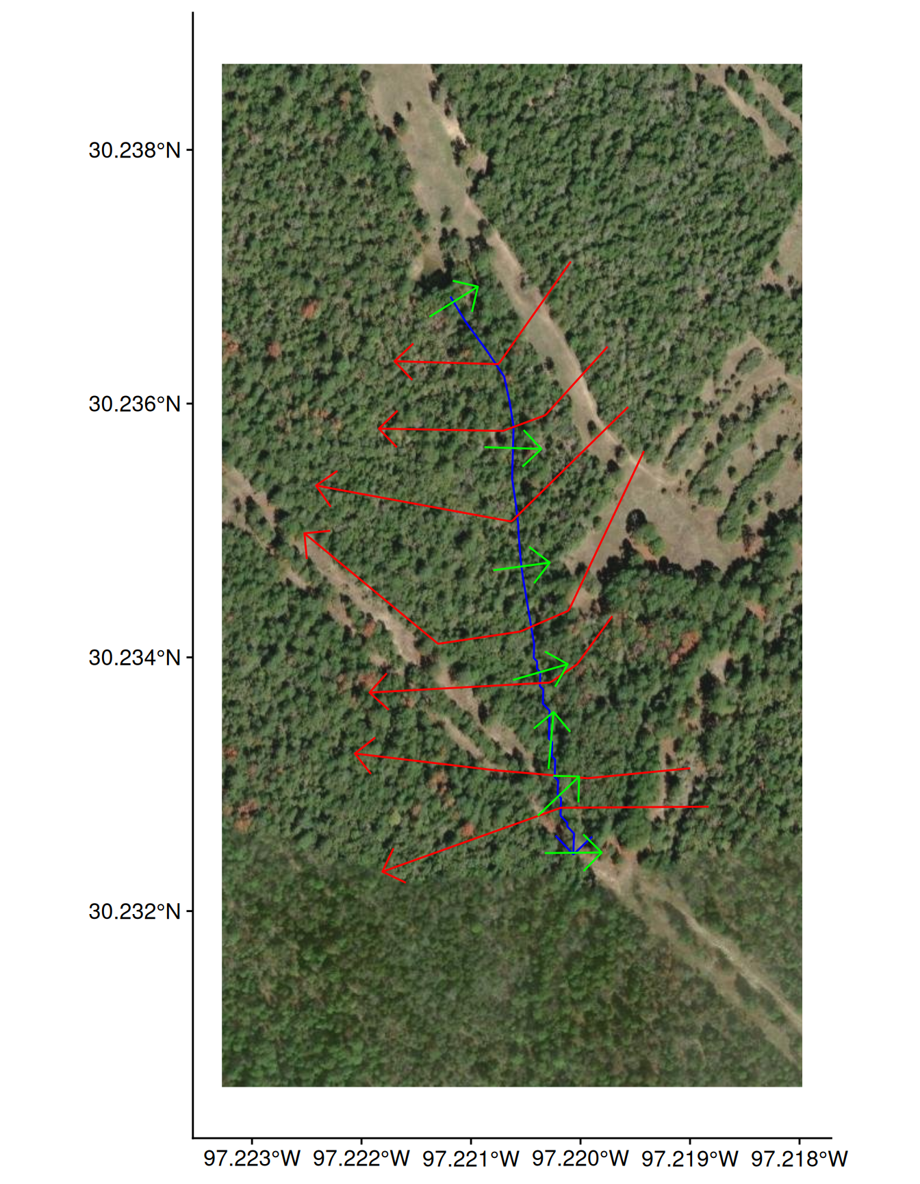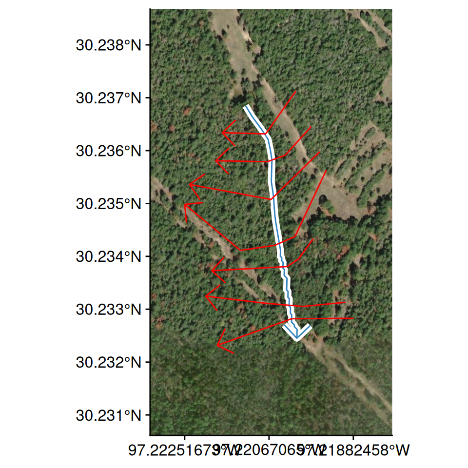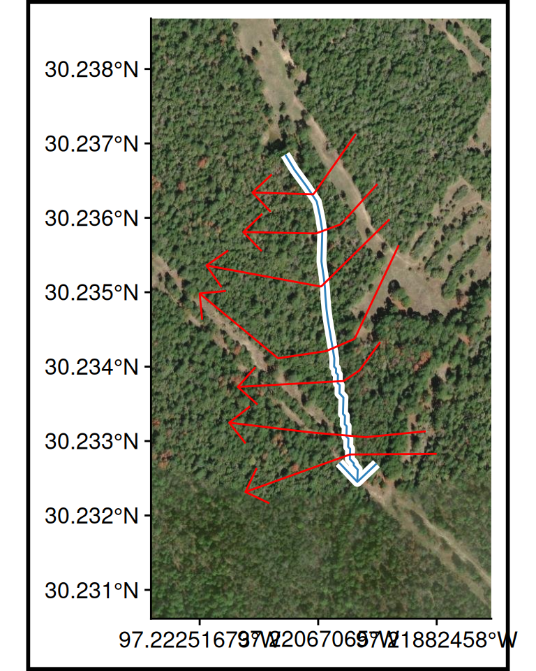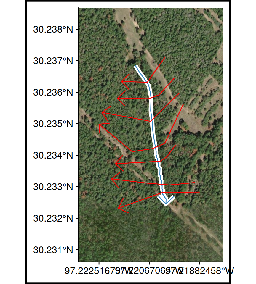 Cross sections should be laid out perpendicular to where water will flow in the channel and overbank areas. Therefore, most cross section lines should be created from a minimum of four points (the end points and points at the edge of the main channel). Cross sections will also be visualized when looking in the downstream direction; therefore, they should be created from left to right when looking downstream (RAS Mapper will automatically flip the line to have the correct orientation).
